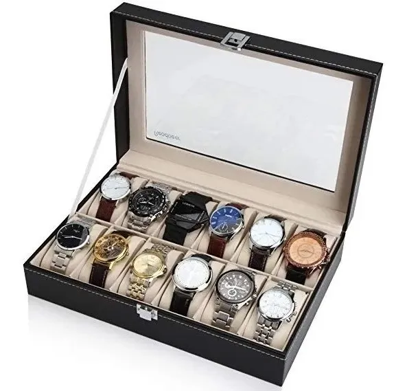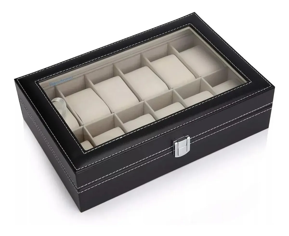 Principal Características : caja de almacenamiento de reloj de moda con 12 rejillas y el vidrio ventana almohadillas extraíbles hacen que sea más conveniente a uso