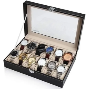 Organizador estuche para relojes, modelo elegante y minimalista.