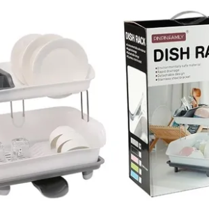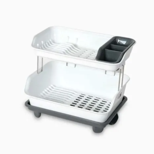 Practico y moderno secador de platos de 2 pisos multifuncional, perfecto para organizar tu vajilla y cubiertos.