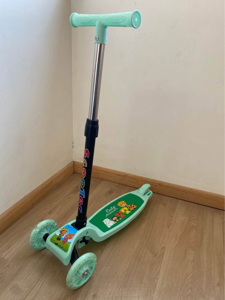 La superficie del scooter es baja al suelo y lo suficientemente grande para los dos pies , por lo que es fácil para los niños el subir, bajar y darse impulso para avanzar