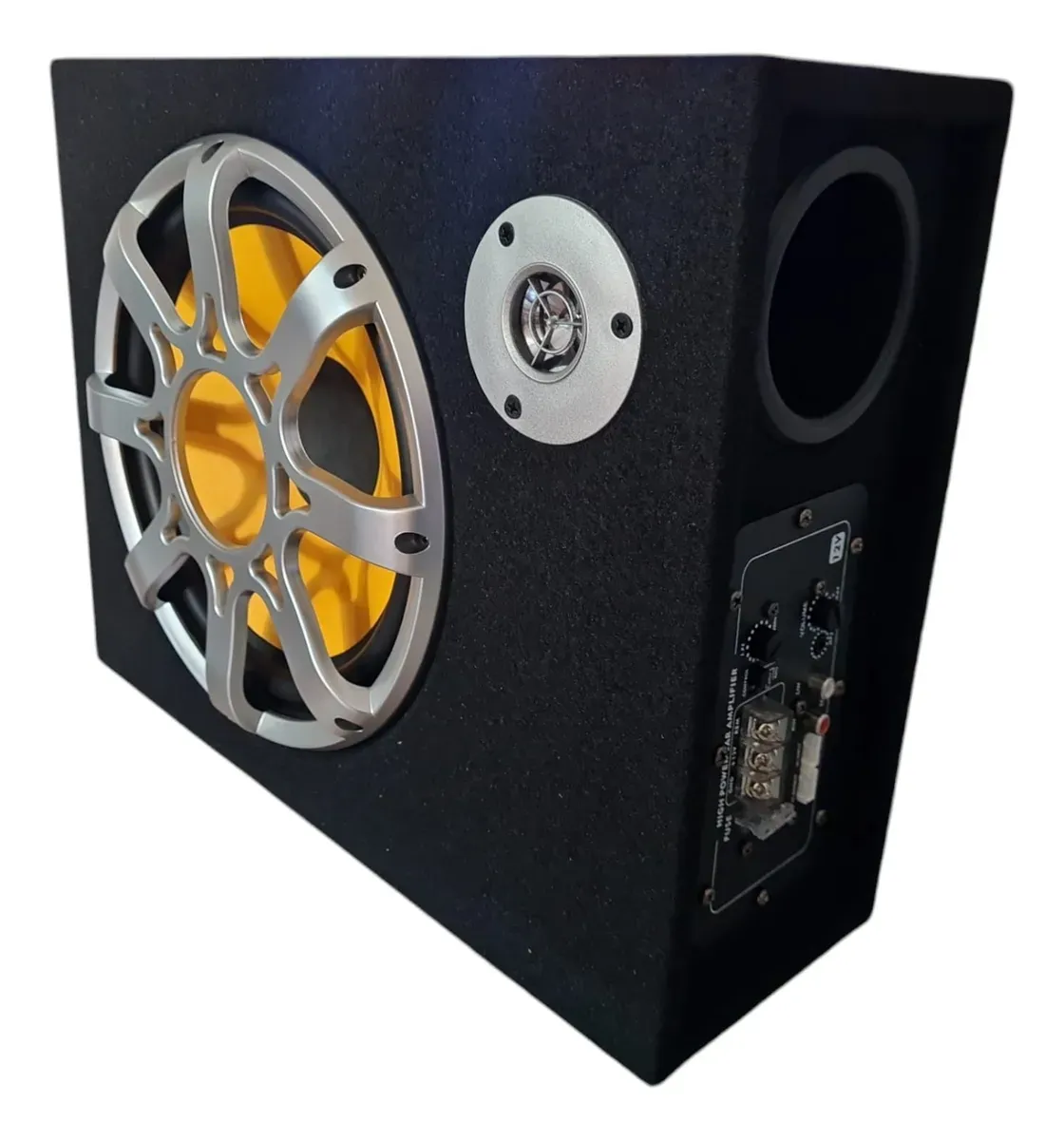 Potencia y calidad de sonido se unen en el Subwoofer Amplificado de Acústica para Auto de Tasbel.